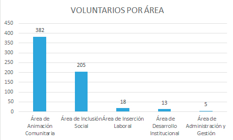 El área de Desarrollo Institucional abarca los departamentos de voluntariado, formación, comunicación, sensibilización y asesoría jurídica.